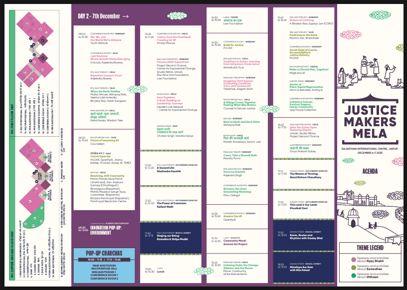 Justicemakers Mela is a two day gathering of 1K+ justice changemakers who are innovating to boldly transform the field of law & justice. Through storytelling, creativity, co-creation, and fun, let us come together in our efforts to effect lasting change.